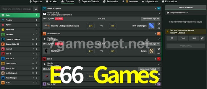 O E66 Games oferece uma grande seleção de opções de apostas em e-sports com probabilidades competitivas